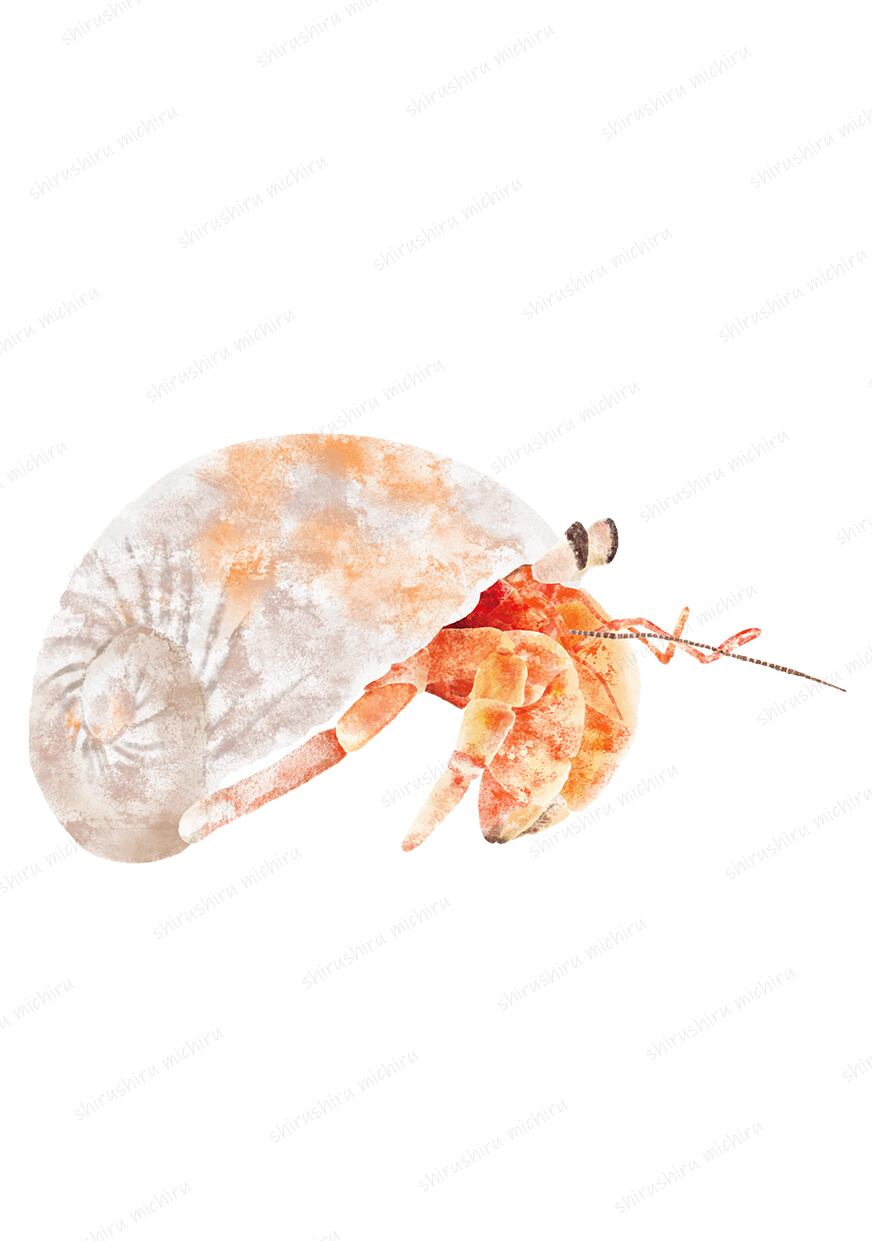 水彩タッチで描いた可愛いやどかりのイラストです。