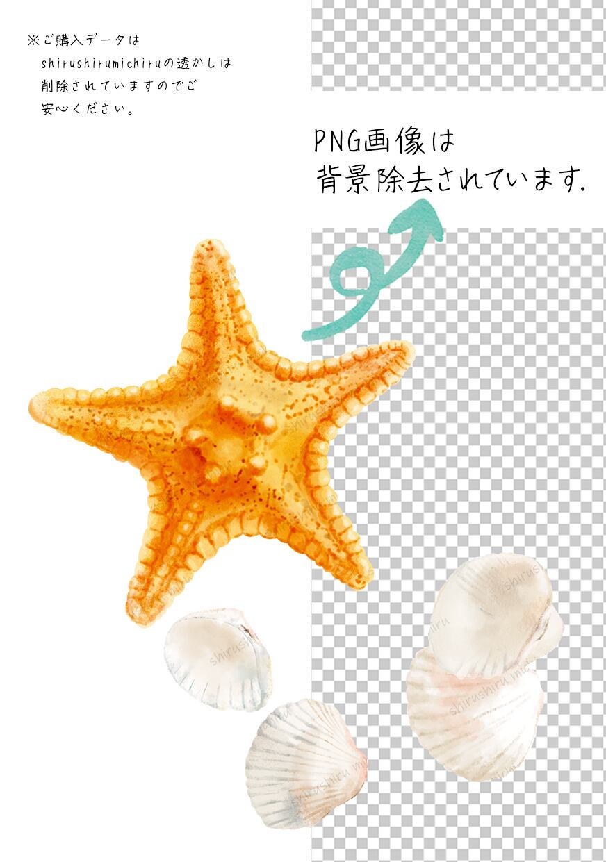 【 Base納品_【商品番号】illust Single SM52_Summer & Beach Illustrations-ヒトデと貝殻.zip 】